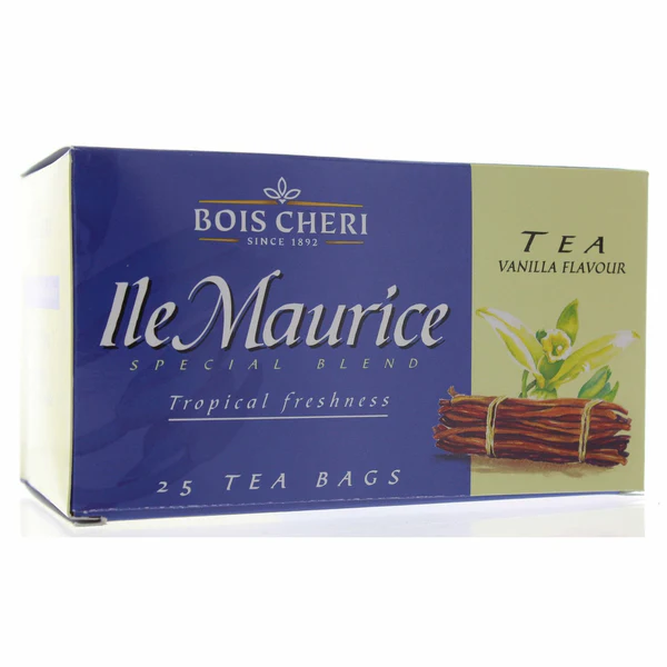 Le thé Bois Chéri Vanille est une véritable spécialité de l’île Maurice. Élaboré à partir de feuilles de thé noir soigneusement sélectionnées, il est aromatisé à la vanille pour offrir une saveur douce et parfumée.